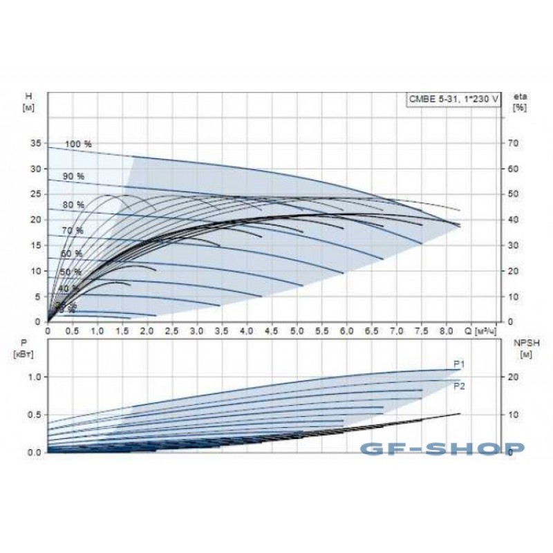 Насосная установка Grundfos CMBE 5-31 со встроенным преобразователем частоты, благодаря чему обеспечивается поддержание постоянного давления в точках водоразбора независимо от количества потребителей. При изменении потребности потребления воды датчик давления подает сигнал на преобразователь частоты, который производит корректировку частоты вращения рабочих колес, если это необходимо. Насосная установка CMBE готова к работе сразу же после монтажа в систему и подключения к сети электропитания. Установка CMBE помимо насоса CME со встроенным преобразователем частоты содержит в себе 5-позиционный штуцер со встроенным обратным клапаном, мембранный бак, манометр, датчик давления. Установка СМBЕ в основном применяется в сфере хозяйственно-бытового водоснабжения и водоснабжения небольших коммерческих зданий или в системах повышения давления. Grundfos CMBE - это насосная установка со встроенным преобразователем частоты, благодаря чему обеспечивается поддержание постоянного давления в точках водоразбора независимо от количества потребителей. При изменении потребности потребления воды датчик давления подает сигнал на преобразователь частоты, который производит корректировку частоты вращения рабочих колес, если это необходимо. Насосная установка CMBE готова к работе сразу же после монтажа в систему и подключения к сети электропитания. Установка CMBE помимо насоса CME со встроенным преобразователем частоты содержит в себе 5-позиционный штуцер со встроенным обратным клапаном, мембранный бак, манометр, датчик давления. Установка СМBЕ в основном применяется в сфере хозяйственно-бытового водоснабжения и водоснабжения небольших коммерческих зданий или в системах повышения давления.