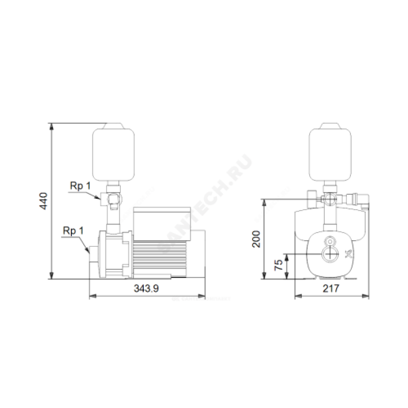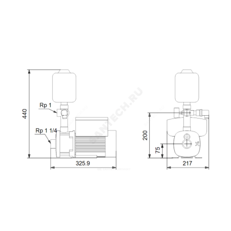 | Диаметр присоединения напорного патрубка | Rp1 1/2" |