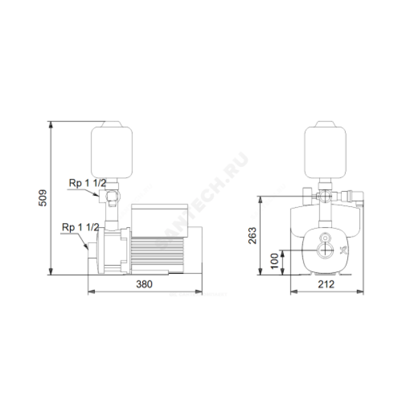 | Диаметр присоединения всасывающего патрубка | Rp1 1/2" |