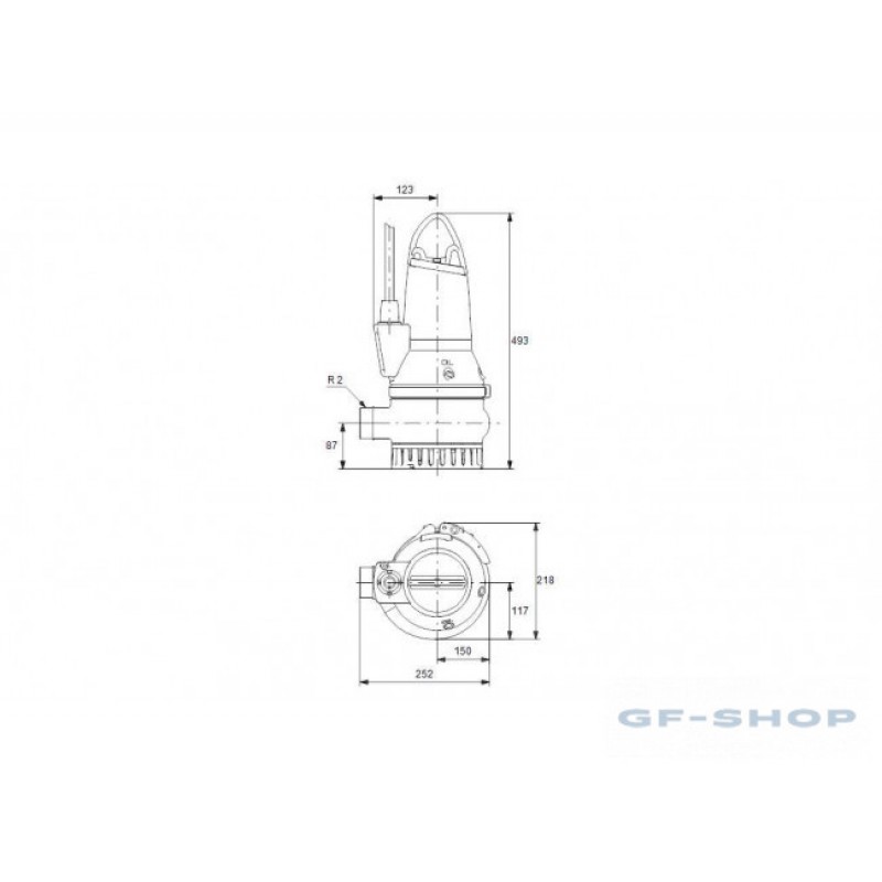 Насос имеет R 2 напорный патрубок и предназначен для свободной установки или установки на автоматической трубной муфте.