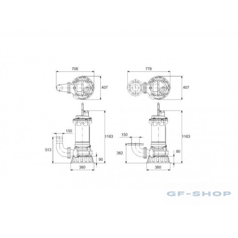 Насос выполнен из чугуна, имеет боковой напорный патрубок и оснащен встроенным погружным трехфазным закрытым электродвигателем, имеющим класс изоляции F (155°C).
