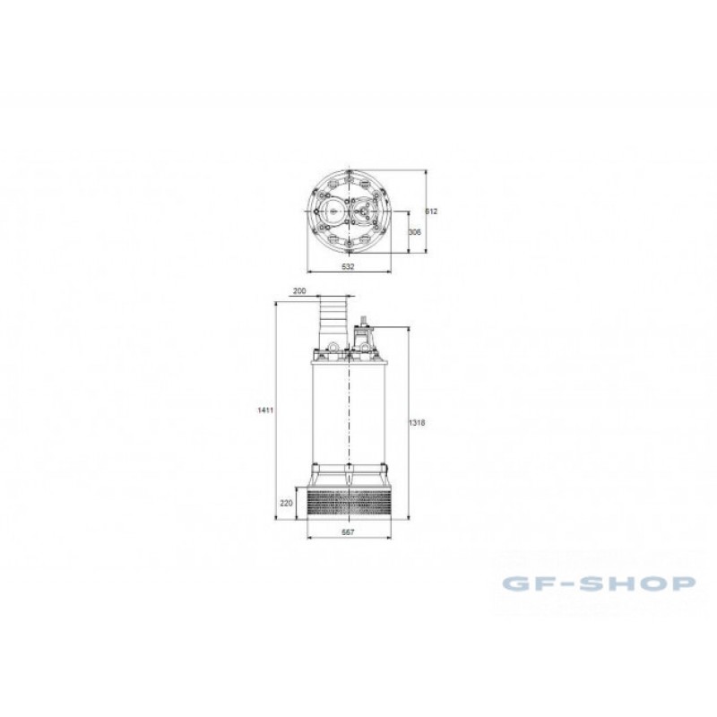Насос выполнен из чугуна, имеет вертикальный напорный канал и оснащен встроенным погружным трехфазным закрытым электродвигателем, имеющим класс изоляции F (155°C).