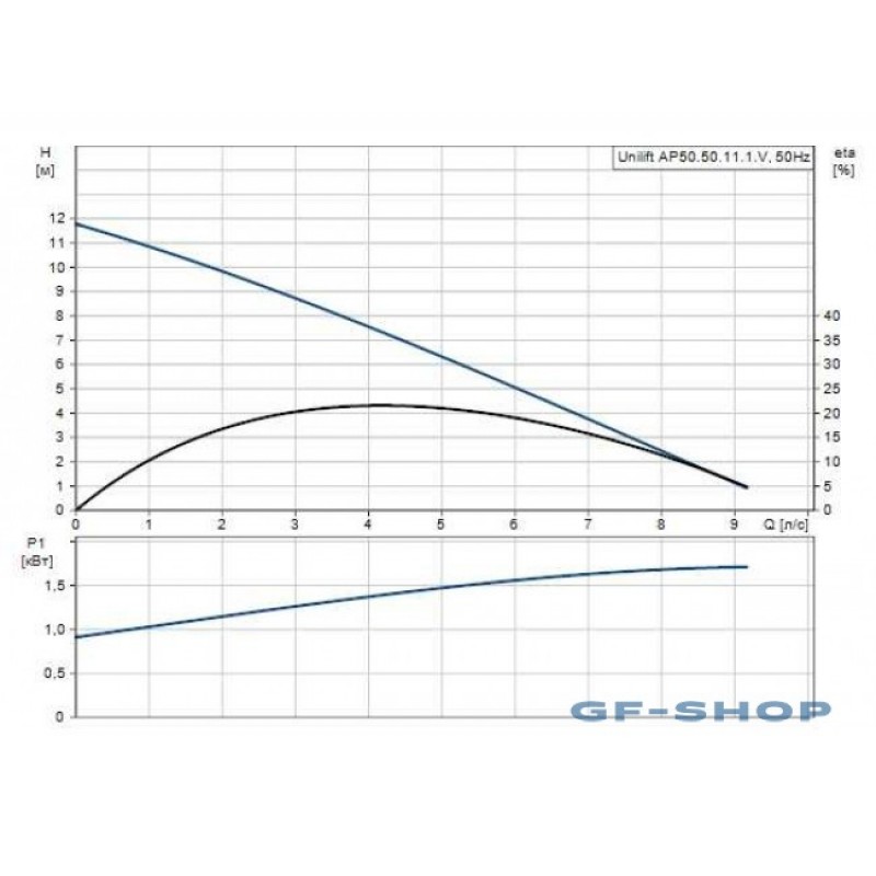 Одноступенчатый погружной дренажный насос Grundfos UNILIFT AP 50.50.11.1.V с вертикальным напорным патрубком и фильтром в основании. Все детали, находящиеся в контакте с рабочей средой, выполнены из нержавеющей стали. Служит для перекачивания чистой и загрязненной воды без волокнистых включений с твердыми частицами до 50 мм, отведения воды из затапливаемых помещений, стиральных машин, моечных агрегатов и душа. А так же откачивания воды из рек, прудов и различных емкостей, откачки ливневых стоков.