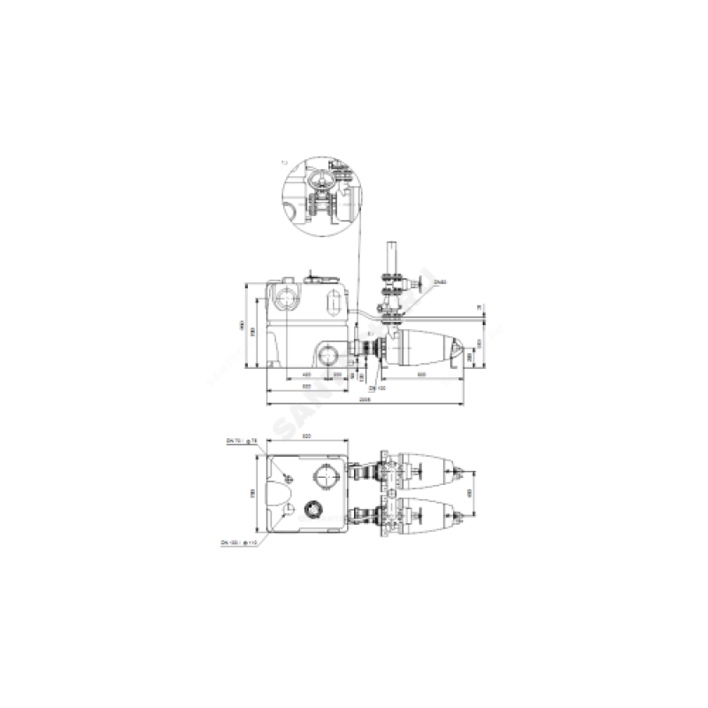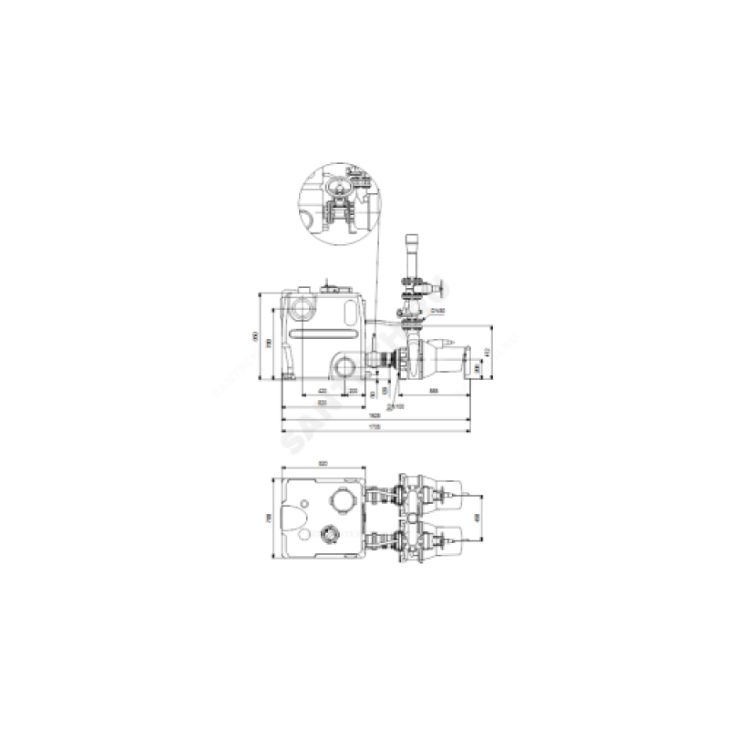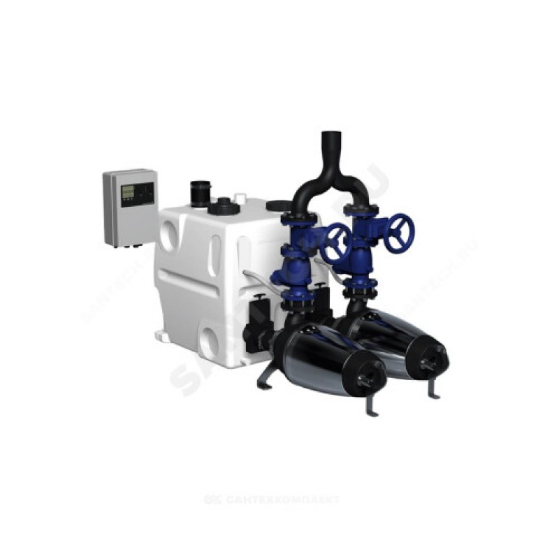 Комплект поставки накопительный резервуар, один насос с однофазным электродвигателем, датчик контроля уровня, обратный клапан, шкаф управления LC 221