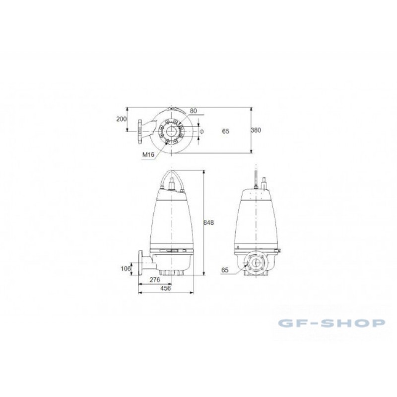 Несамовсасывающий одноступенчатый центробежный насос, предназначенный для перекачивания сточных вод, технологических вод и неочищенных сточных вод, не пропущенных через решетку. Насос предназначен для периодической и непрерывной эксплуатации. Безжидкостная система охлаждения, не требующая технического обслуживания, обеспечивает возможность использования насоса при установке в погруженном положении или «сухой» установке. Эффективное рабочее колесо SuperVortex обеспечивает проход длинных волокон и твердых частиц до 65 мм и подходит для сточных вод с содержанием сухих веществ до 5%. Уникальная система монтажа с помощью хомута из нержавеющей стали позволяет быстро и легко выполнять демонтаж насоса с узла электродвигателя для технического обслуживания и осмотра. Не требуются никакие специальные инструменты. Соединение трубопровода обеспечивается с использованием фланца DIN . Насос имеет взрывобезопасное исполнение.