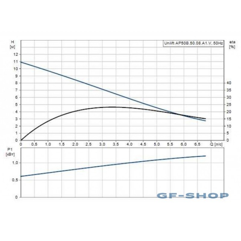 Дренажный насос Grundfos UNILIFT AP 50B.50.08.A1.V служит для отвода бытовых и промышленных сточных вод. Способен откачивать воду, содержащую в себе ограниченное количество твердых включений до 50 мм. Допускается монтаж насоса как в горизонтальном, так и в вертикальном положении. Насос применим для дренажных систем, опорожнения котлованов, шахт и резервуаров, откачки из рек и прудов, откачки бытовых стоков без фекалий. Unilift AP и Unilift AP Basic являются погружными дренажными насосами. Переносные, отдельно стоящие насосы Unilift AP спроектированы как для временного монтажа (портативными), так и для постоянной стационарной установки. Данные одноступенчатые насосы в основном выполнены из нержавеющей стали. Все модели доступны либо в однофазном исполнении, либо в трёхфазном исполнении, и с питанием 50 или 60 Гц.Номер в условном обозначении модели, например, AP12 указывает на размер круглых частиц, которые насос может пропустить.Все насосы Unilift AP и AP Basic оснащаются штепселем для соединения с сетью питания. Unilift AP является одноступенчатым насосом либо с полуоткрытым рабочим колесом (AP12), либо с вихревым рабочим колесом (AP35 и AP50). Все насосы Unilift AP оснащаются муфтой из нержавеющей стали для охлаждения в процессе эксплуатации. Сетчатый фильтр в нижней части препятствует попаданию в насос частиц, превышающих предельно допустимый размер для данного насоса. Сетчатый фильтр крепится к корпусу насоса хомутом. Все насосы Unilift AP могут поставляться с поплавковым выключателем или без него с целью обеспечения автоматического или ручного режима работы. Насосы, в условном обозначении которых присутствует буква "А" оснащаются поплавковым выключателем. Трёхфазная версия имеет дополнительный пускатель, соединённый с поплавковым выключателем. Выходное отверстие расположено в верхней части насоса и может иметь резьбу от Rp 1 1/2 до Rp 2. Дополнительный обратный клапан с поворотным диском может быть установлен на выходном отверстии для предотвращения обратного потока. Насосы Unilift AP Basic являются одноступенчатыми насосами (AP35B, AP50B) с вихревым рабочим колесом. Все насосы Unilift AP Basic выполнены из нержавеющей стали с композитной плитой-основанием. Серия Unilift AP Basic спроектирована для работы в погружённом состоянии, насос устанавливается отдельно на плите-основании или с использованием автоматической трубной муфты. Всасывающий патрубок спроектирован для предотвращения попадания крупных частиц в насос. Плита-основание присоединяется с помощью четырёх хомутов, скрытых под композитным кольцом в верхней части корпуса насоса. Кольцо предотвращает налипание грязи на хомуты. Все насосы Unilift AP Basic могут поставляться с поплавковым выключателем или без него с целью обеспечения автоматического или ручного режима работы. Насосы с буквой "А" в условном обозначении модели оснащаются поплавковым выключателем. Выходное отверстие расположено в боковой части насоса и имеет резьбу R 2. Назначение Перекачивание воды и дождевой воды на садовых участках Перекачивание воды из рек и озёр Перекачивание дождевой, дренажной и паводковой воды Перекачивание воды для заполнения/опорожнения контейнеров, водоотстойников, баков и т. п. Перекачивание стоков от душевых, стиральных машин и раковин, расположенных ниже уровня канализационный системы Перекачивание воды для бассейнов Перекачивание дренажной воды из