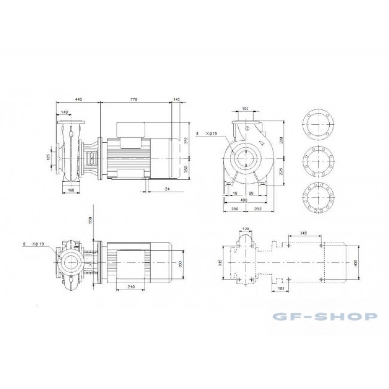 Несамовсасывающий, одноступенчатый, центробежный, насос со спиральной направляющей камерой разработан в соответствии с ISO 5199, при этом его размер и номинальная мощность соответствуют EN 733 (10 бар). Фланцы - PN 16 с размерами в соответствии с EN 1092-2. Насос имеет осевой всасывающий патрубок, радиальный напорный патрубок, горизонтальный вал и конструкцию со съёмной задней частью, обеспечивающей возможность демонтажа электродвигателя, фонаря, крышки и рабочего колеса без демонтажа корпуса насоса или трубопроводов. Несбалансированное резиновое сильфонное уплотнение в соответствии с DIN EN 12756. Насос напрямую соединён с асинхронным электродвигателем с воздушным охлаждением.