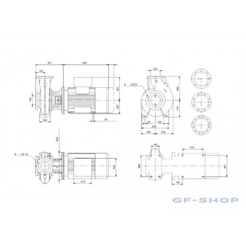 Несамовсасывающий, одноступенчатый, центробежный, насос со спиральной направляющей камерой разработан в соответствии с ISO 5199, при этом его размер и номинальная мощность соответствуют EN 733 (10 бар). Фланцы - PN 16 с размерами в соответствии с EN 1092-2. Насос имеет осевой всасывающий патрубок, радиальный напорный патрубок, горизонтальный вал и конструкцию со съёмной задней частью, обеспечивающей возможность демонтажа электродвигателя, фонаря, крышки и рабочего колеса без демонтажа корпуса насоса или трубопроводов. Несбалансированное резиновое сильфонное уплотнение в соответствии с DIN EN 12756. Насос напрямую соединён с асинхронным электродвигателем с воздушным охлаждением.