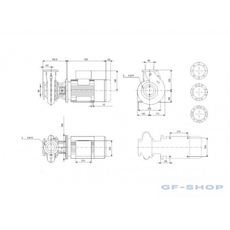 Несамовсасывающий, одноступенчатый, центробежный, насос со спиральной направляющей камерой разработан в соответствии с ISO 5199, при этом его размер и номинальная мощность соответствуют EN 733 (10 бар). Фланцы - PN 16 с размерами в соответствии с EN 1092-2. Насос имеет осевой всасывающий патрубок, радиальный напорный патрубок, горизонтальный вал и конструкцию со съёмной задней частью, обеспечивающей возможность демонтажа электродвигателя, фонаря, крышки и рабочего колеса без демонтажа корпуса насоса или трубопроводов. Несбалансированное резиновое сильфонное уплотнение в соответствии с DIN EN 12756. Насос напрямую соединён с асинхронным электродвигателем с воздушным охлаждением.