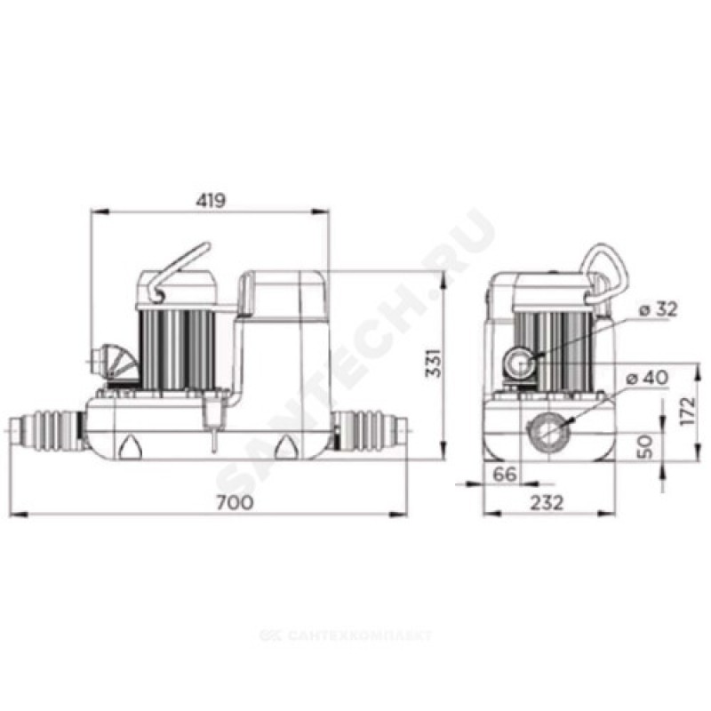 | Диаметр присоединения напорного патрубка | 32/40 мм |
