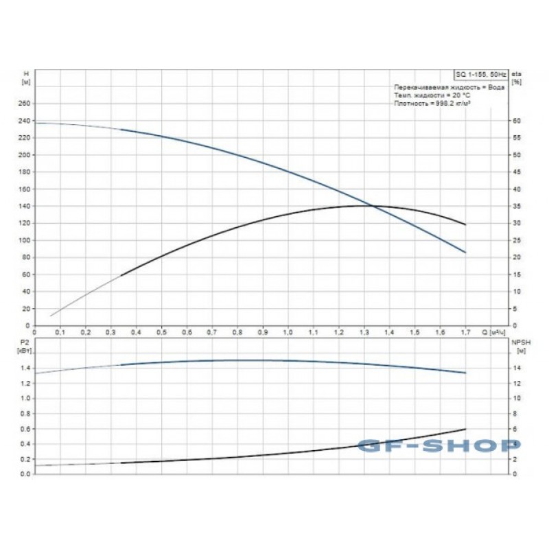 Скважинный насос Grundfos SQ 1- 155 рассчитан для работы с чистой водой, не содержащей посторонних волокон, твердых частичек. Оборудование комплектуется системами предохранителей от функционирования всухую, за счет которых обеспечивается автоматическое отключение, если в водозаборном источнике нет воды. Насосы серии отличаются производительностью, долговечностью, что достигается включением стекловолокна в гидравлические элементы. Оборудование экономично в расходе тока, минимизирует затраты пользователя, может устанавливаться в различном положении.