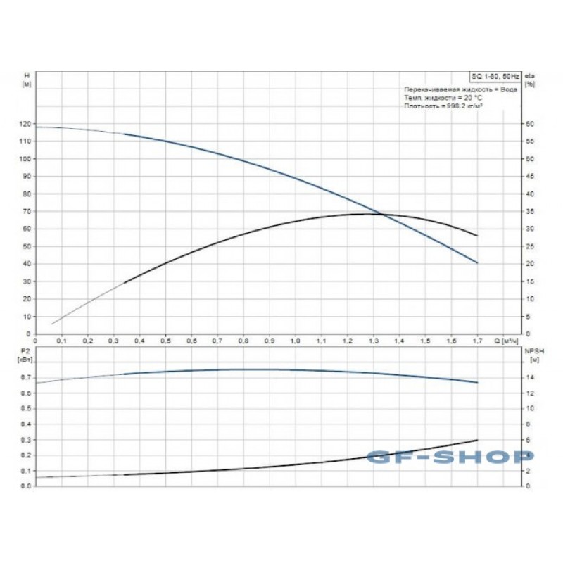 Скважинный насос GrundfosSQ 1- 80 рассчитан для работы с чистой водой, не содержащей посторонних волокон, твердых частичек. Оборудование комплектуется системами предохранителей от функционирования всухую, за счет которых обеспечивается автоматическое отключение, если в водозаборном источнике нет воды. Насосы серии отличаются производительностью, долговечностью, что достигается включением стекловолокна в гидравлические элементы. Оборудование экономично в расходе тока, минимизирует затраты пользователя, может устанавливаться в различном положении.