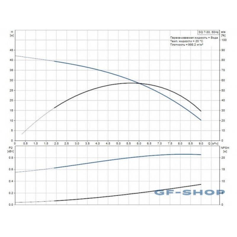 Скважинные насосы Grundfos SQ 7-30 предназначены для перекачивания чистых, не содержащих твердых частиц или волокон, жидкостей. Применяются для подачи грунтовой воды в системы водоснабжения частных домов, небольших водопроводных станций, ирригационных систем. Насос скважинный Grundfos SQ рассчитан для работы с чистой водой, не содержащей посторонних волокон, твердых частичек. Оборудование комплектуется системами предохранителей от функционирования всухую, за счет которых обеспечивается автоматическое отключение, если в водозаборном источнике нет воды. Насосы серии отличаются производительностью, долговечностью, что достигается включением стекловолокна в гидравлические элементы. Оборудование экономично в расходе тока, минимизирует затраты пользователя, может устанавливаться в различном положении. Насосы допускается применять для водоснабжения домов, наполнения резервуаров, в ирригационных системах. Модели поддерживают хороший напор даже при проблемах с напряжением сети. Функция плавного пуска устраняет повреждения от воздействия гидроударов, а обратный клапан препятствует образованию обратного потока. Оптимальная конструкция из нержавеющей стали и антикоррозийных материалов в сочетании с низкими производственными затратами обеспечивают высокий КПД насоса и электродвигателя. Насосы SQ/SQE подходят как для непрерывной работы, так и для работы с перерывами, что соответствует большому количеству видов назначения: Подача грунтовых вод – частные дома, небольшие системы водоснабжения, небольшие системы орошения; Перекачивание жидкости в резервуары; Повышение давления; Экологические решения – восстановительное откачивание или взятие проб; Гаражи и заправочные станции.