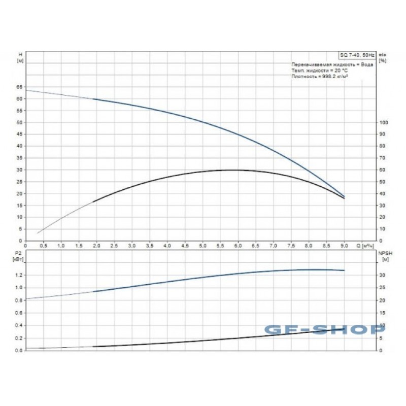 Скважинные насосы Grundfos SQ 7-40 предназначены для перекачивания чистых, не содержащих твердых частиц или волокон, жидкостей. Применяются для подачи грунтовой воды в системы водоснабжения частных домов, небольших водопроводных станций, ирригационных систем. Насос скважинный Grundfos SQ рассчитан для работы с чистой водой, не содержащей посторонних волокон, твердых частичек. Оборудование комплектуется системами предохранителей от функционирования всухую, за счет которых обеспечивается автоматическое отключение, если в водозаборном источнике нет воды. Насосы серии отличаются производительностью, долговечностью, что достигается включением стекловолокна в гидравлические элементы. Оборудование экономично в расходе тока, минимизирует затраты пользователя, может устанавливаться в различном положении. Насосы допускается применять для водоснабжения домов, наполнения резервуаров, в ирригационных системах. Модели поддерживают хороший напор даже при проблемах с напряжением сети. Функция плавного пуска устраняет повреждения от воздействия гидроударов, а обратный клапан препятствует образованию обратного потока. Оптимальная конструкция из нержавеющей стали и антикоррозийных материалов в сочетании с низкими производственными затратами обеспечивают высокий КПД насоса и электродвигателя. Насосы SQ/SQE подходят как для непрерывной работы, так и для работы с перерывами, что соответствует большому количеству видов назначения: Подача грунтовых вод – частные дома, небольшие системы водоснабжения, небольшие системы орошения; Перекачивание жидкости в резервуары; Повышение давления; Экологические решения – восстановительное откачивание или взятие проб; Гаражи и заправочные станции.