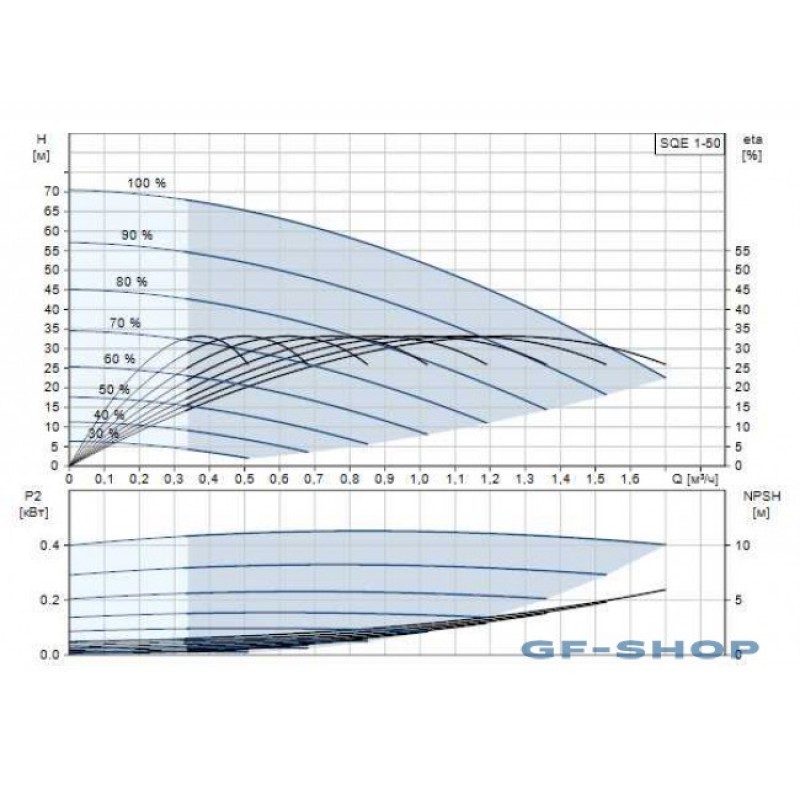 Скважинные насосы Grundfos SQE 1-50 предназначены для перекачивания чистых, не содержащих твердых частиц или волокон, жидкостей. Применяются для подачи грунтовой воды в системы водоснабжения частных домов, небольших водопроводных станций, ирригационных систем. Насосы SQE работают с переменной скоростью, что достигается за счет регулировки частоты. Как следствие, насос может быть настроен для функционирования в любой рабочей точке в диапазоне между минимальной и максимальной рабочей характеристикой насоса. Серия трёхдюймовых погружных насосов Grundfos SQ/SQE обеспечивает широкий диапазон производительности, что позволяет легко найти модель, которая соответствует вашим индивидуальным требованиям. Насосы SQ/SQE являются компактными, трёхдюймовыми, многоступенчатыми, центробежными насосами, которые могут устанавливаться даже в самой узкой скважине (минимальный диаметр скважины 76 мм). Встроенные электронные компоненты повышают уровень комфорта и значительно облегчают эксплуатацию насосов серии SQ/SQE. Они гарантируют надёжное водоснабжение при любых условиях. Данные насосы компактны и легки в установке, они оснащёны двигателями с постоянными магнитами, обеспечивают высокую эффективность и подачу напора до 200 м. Если насос SQE соединён с блоком управления Grundfos CU 301, то это позволяет обеспечить подачу воды с постоянным давлением. Назначение Насосы SQ/SQE подходят как для непрерывной работы, так и для работы с перерывами, что соответствует большому количеству видов назначения: Подача грунтовых вод – частные дома, небольшие системы водоснабжения, небольшие системы орошения; Перекачивание жидкости в резервуары; Повышение давления; Экологические решения – восстановительное откачивание или взятие проб; Гаражи и заправочные станции.