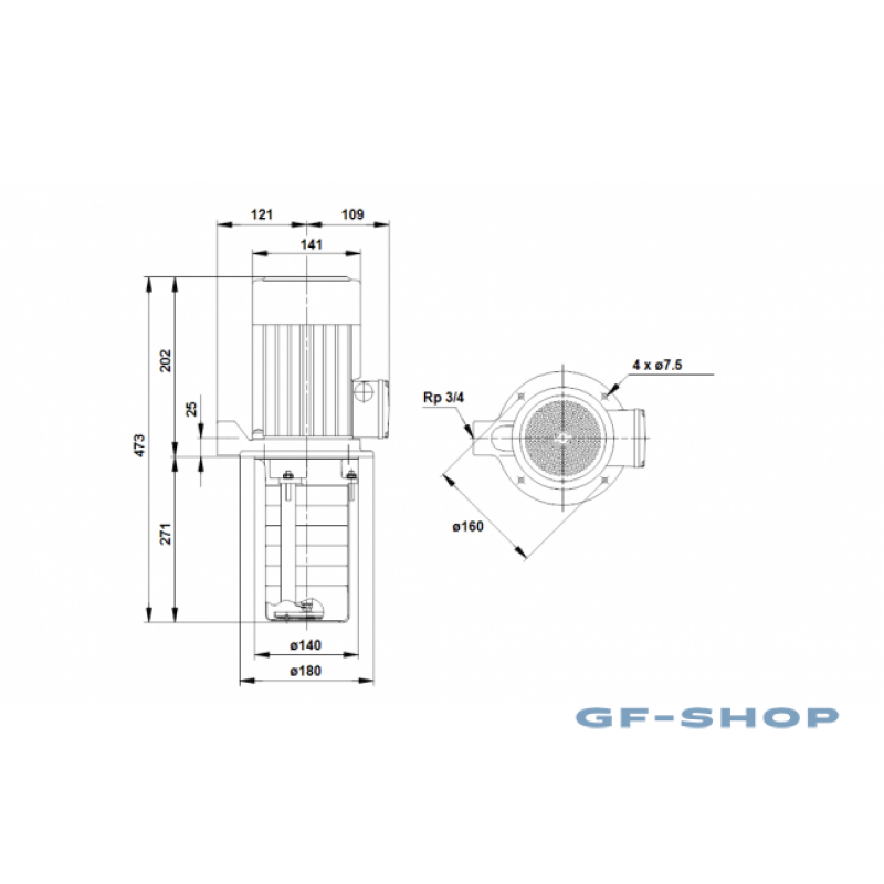 Насос с глухим соединением, оснащенный стандартным 3-фазным электродвигателем
