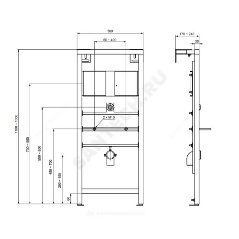 | Наименование производителя | Встраиваемая рама для писсуаров с задней подводкой. Регулируемая высота 1180-1350 мм, ширина 500 мм. Стальная рама, облегченный монтаж. Регулируемая глубина 170-240 мм |