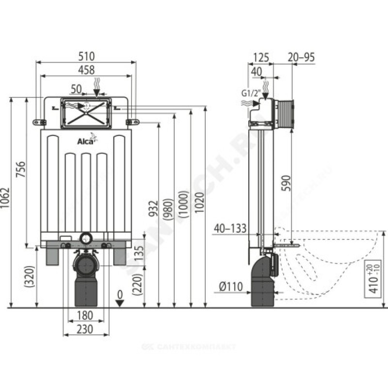 | Модель инсталляции/бачка | Alcamodul |