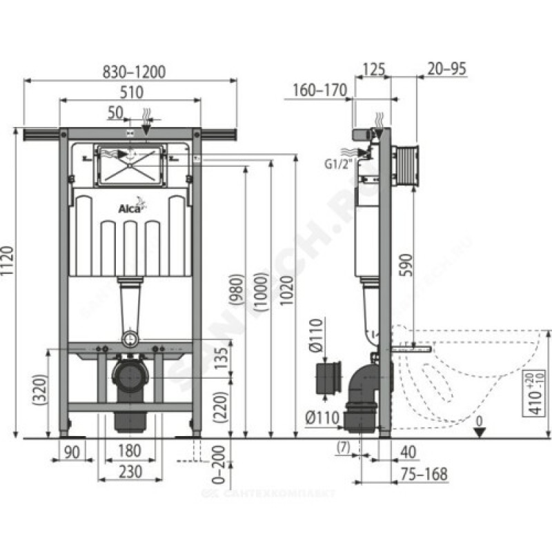 | Расстояние между креплениями сантехнического прибора | 180/230 мм |