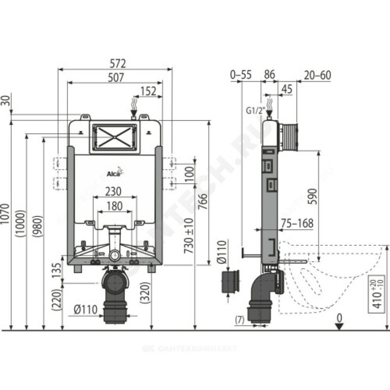 | Комплект поставки | Бачок с впускным и выпускным механизмомОцинкованная консоль несущей конструкцииРезьбовое соединение 1/2" для подвода воды со встроенным угловым вентилем Schell 1/2"–3/8"Монтажный комплект: винт ?8?60 – 4 шт., дюбель ?12 – 4 шт.Монтажный комплект для крепления унитаза: шпилька М12 – 2 шт., шайба – 4 шт., колпачок – 2 шт., гайка – 2 шт., гофрированный рукав – 2 шт.Стоковое колено из полипропилена HT90/110Прокладка, патрубок полипропилен, манжетаПрокладка, патрубок полипропилен, уплотнение патрубкаМонтажный комплект крышек для защиты технических отверстий при установке системыРукав сервисного отверстия двусоставный, легко укорачивается |
