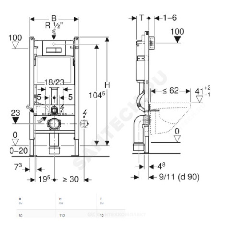 | Глубина установки инсталляции | 120 мм |