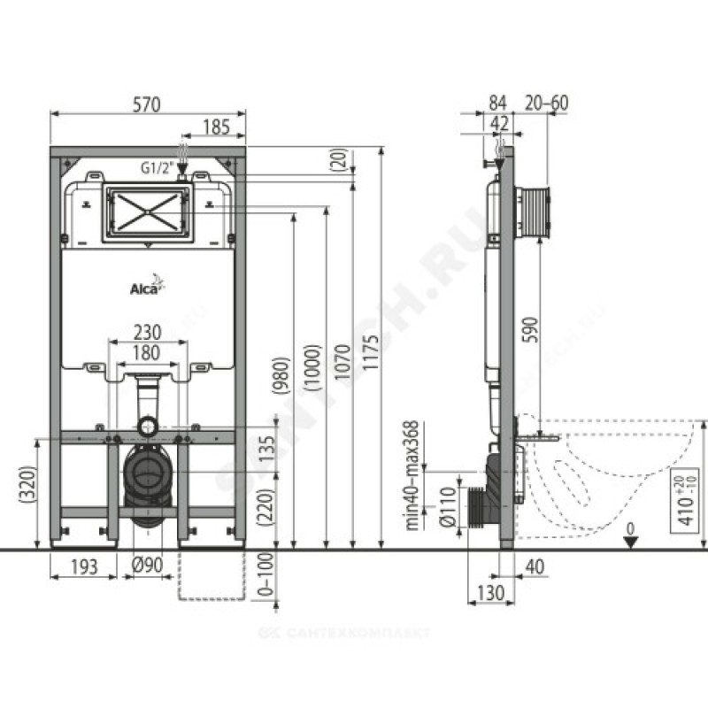 Расстояние между креплениями сантехнического прибора 180/230 мм