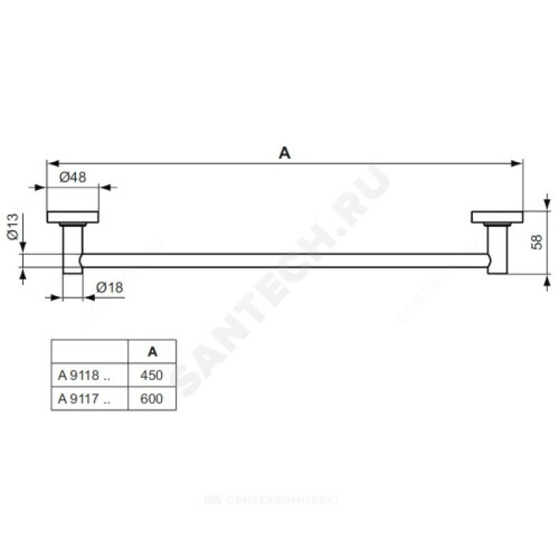 | Примечание | Полотенцедержатель 60 см, максимальная нагрузка 20 кг, с крепежом, диаметр трубы 13 мм |