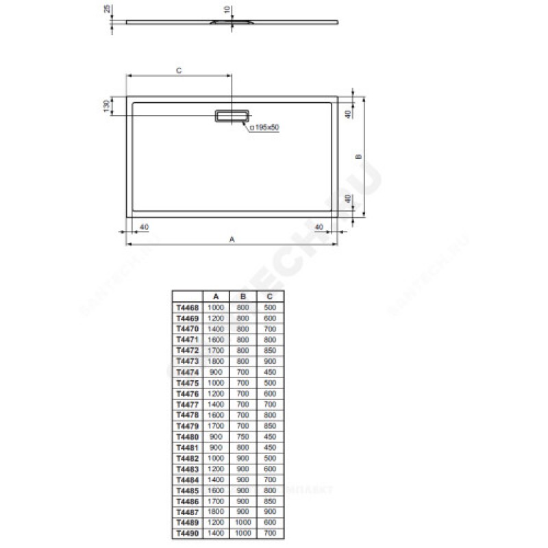 | Наименование производителя | Ультратонкий акриловый прямоугольный душевой поддон 1000x800x25 мм Ideal Standard ULTRAFLAT NEW T4468V3 |
