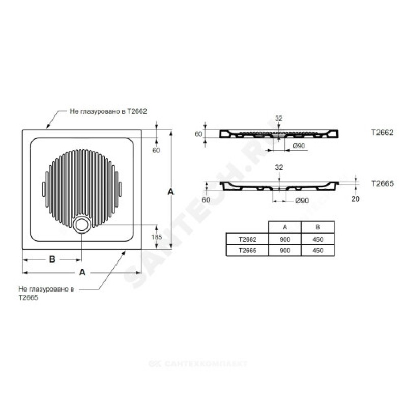 | Комплект поставки | CONNECT Керамический квадратный душевой поддон 90X90 см. Сифон заказывается дополнительно |