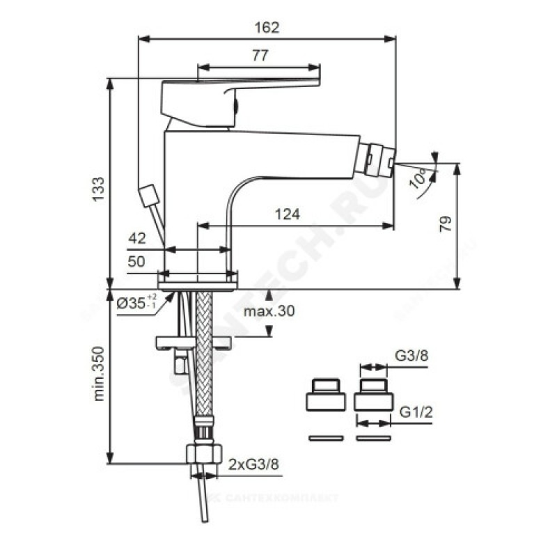 | Стандарт подводки | М10х1-G3/8", в комплекте переходник G3/8"-G1/2" |
