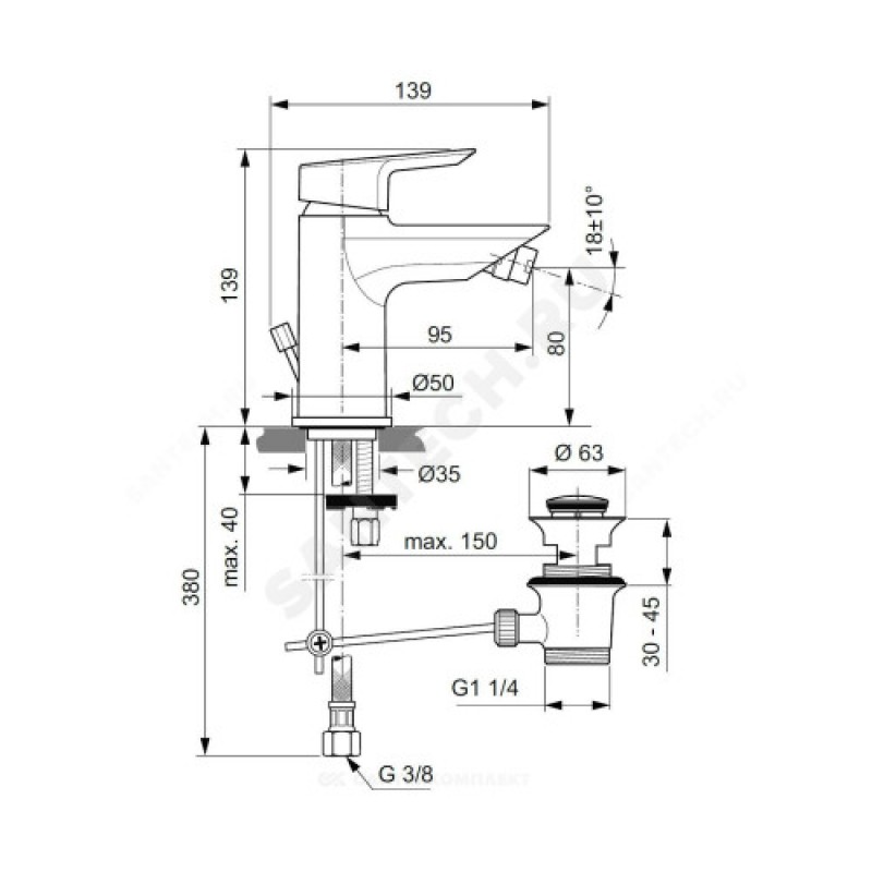 | Комплект поставки | смесителькрепежный комплектдонный клапан 1 1/4"подводка гибкая - параупаковкапаспорт |
