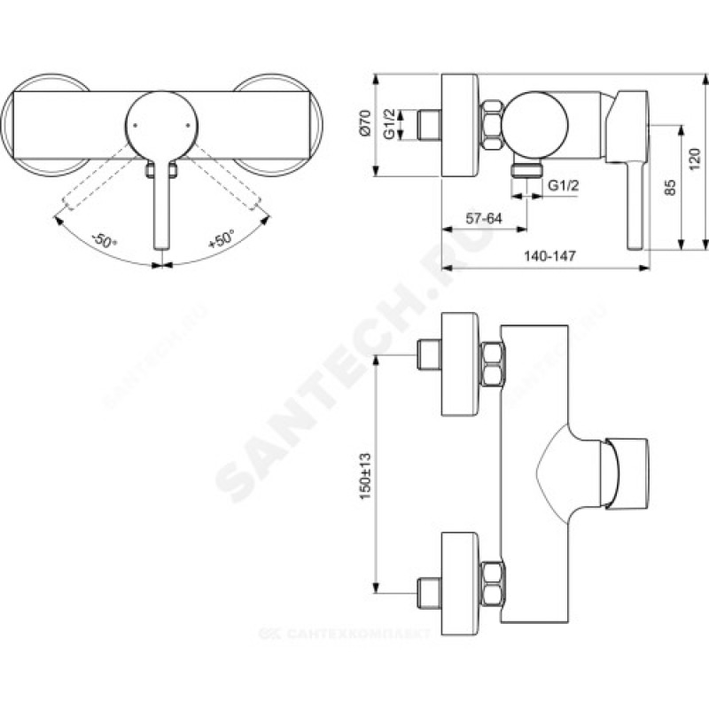 | Наименование производителя | Настенный смеситель для душа Ideal Standard CERALINE BC200XG |
