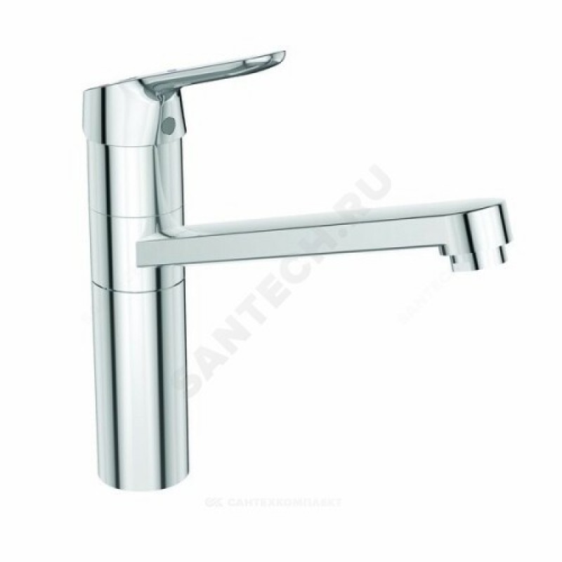 CERAFLEX Однорычажный смеситель для кухонной мойки, Технология Blue Start, средний изливсистема монтажа EASY-FIX (облегченный монтаж) с пластиковой опорной пластиной для более стабильного монтажа на мойке из нержавеющей стали, литой поворотный изливаэратор Perlatorкерамический картридж IS 40 мм, с функцией HWTC (ограничение максимальной температуры горячей воды), с функцией CLICK (ограничение потока воды), индикатор холодной/горячей воды (индикатор холодной воды расположен по центру)гибкая подводка G3/8", шланги стандартной длины 400 мм
