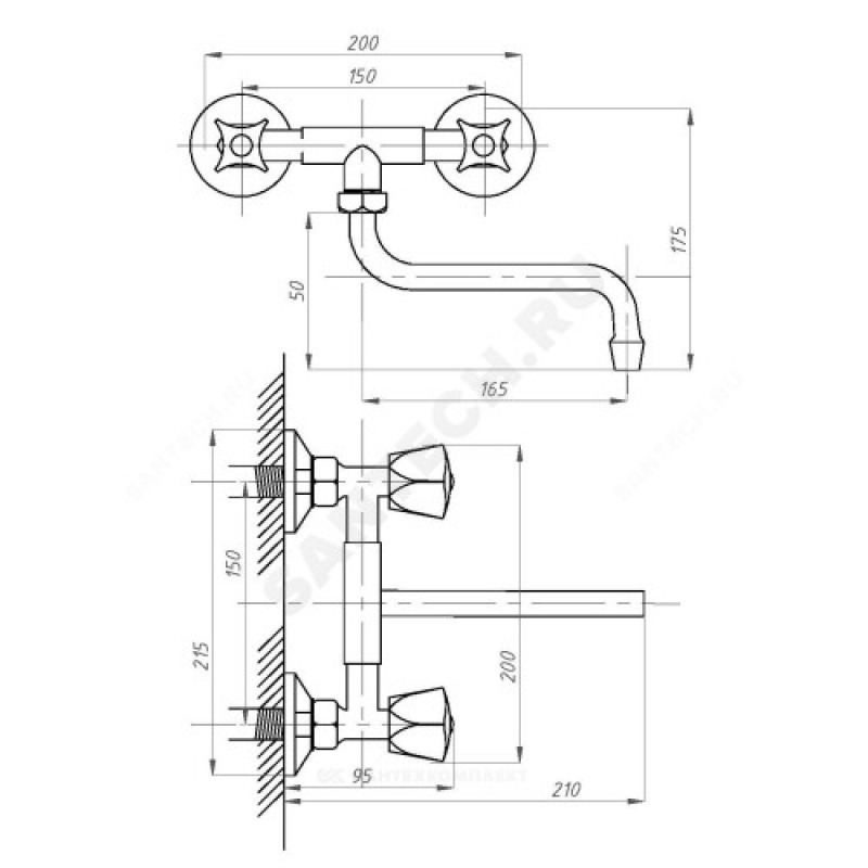 - Артикул:Смеситель для кухонной мойки ПСМ-108-К/50 двуручный Профсан