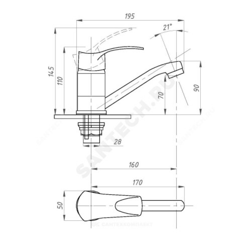 | Длина излива | 160 мм |