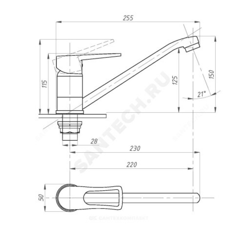 | Длина излива | 220 мм |