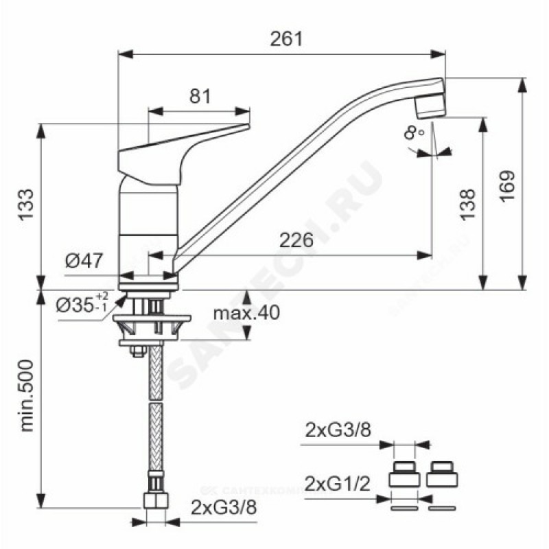 | Стандарт подводки | М10х1-G3/8", в комплекте переходник G3/8"-G1/2" |