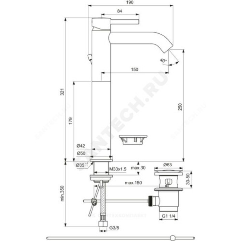 CERALINE Vessel Однорычажный смеситель для раковины с удлиненным корпусомкартридж 35 мм с функцией HWTC (ограничение максимальной температуры горячей воды) (ВНИМАНИЕ - с марта 2021 замена на 28 мм FirmaFlow)гибкая подводка G3/8"монтаж IS-Fix - крепеж на центральной гайке M 33x1,5 с двумя блокирующими винтами (обеспечивает стабильную фиксацию смесителя)аэратор Cashe с ограничением потока 5 л/мин.металлическая рукоятка с индикаторами горячей / холодной водыметаллический донный клапан