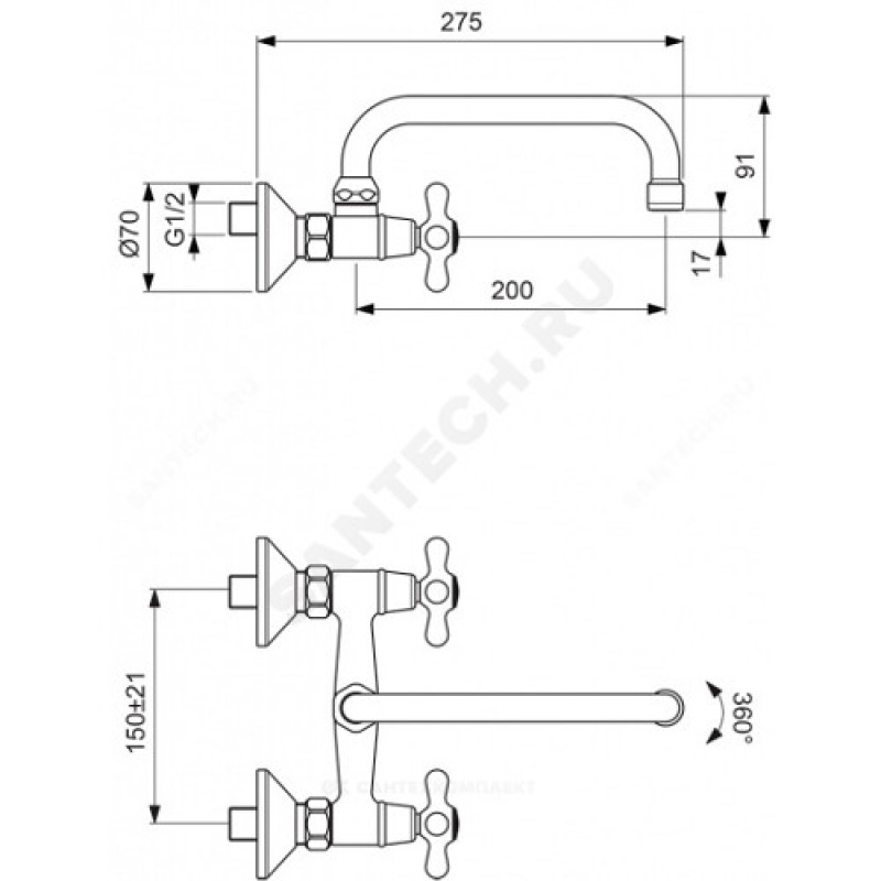| Наименование производителя | "Ретро" смеситель для умывальника настенный, "U"-излив 200 мм, хром |