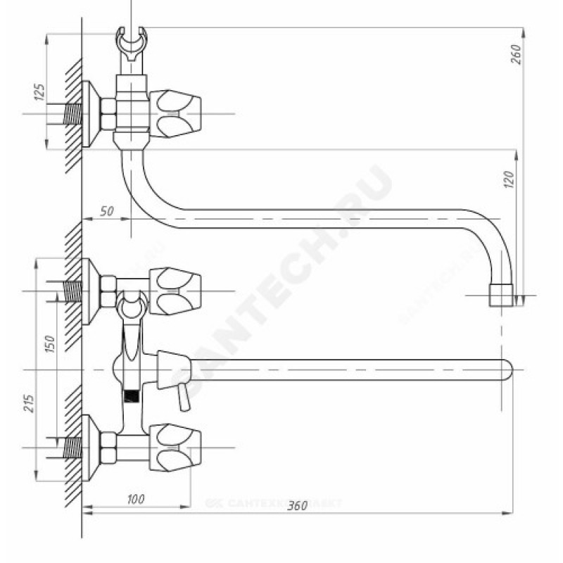 - Артикул:Смеситель для ванны с душем ПСМ-157-ЕК/48 двуручный Профсан