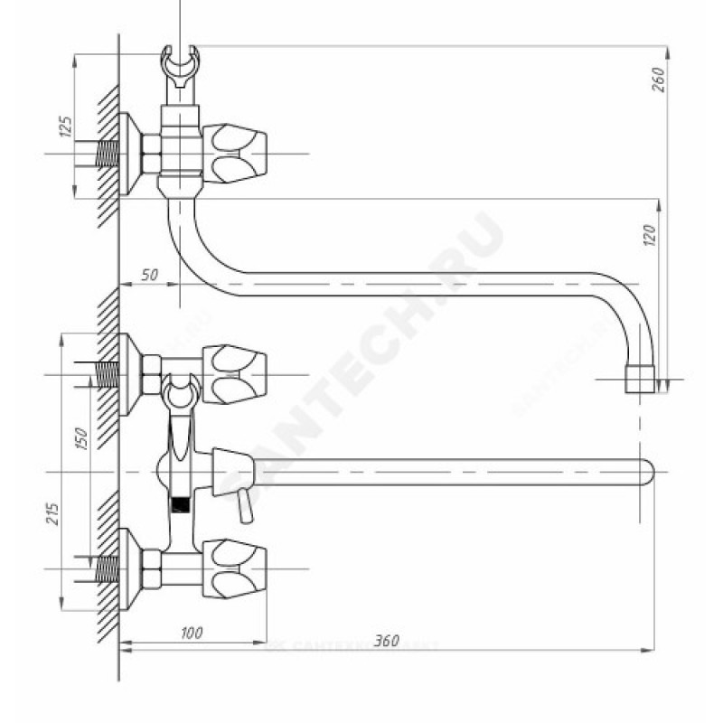 - Артикул:Смеситель для ванны с душем ПСМ-157-ЕК/75 двуручный Профсан