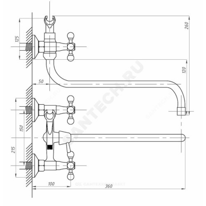 - Артикул:Смеситель для ванны с душем ПСМ-157-К/89 двуручный Профсан