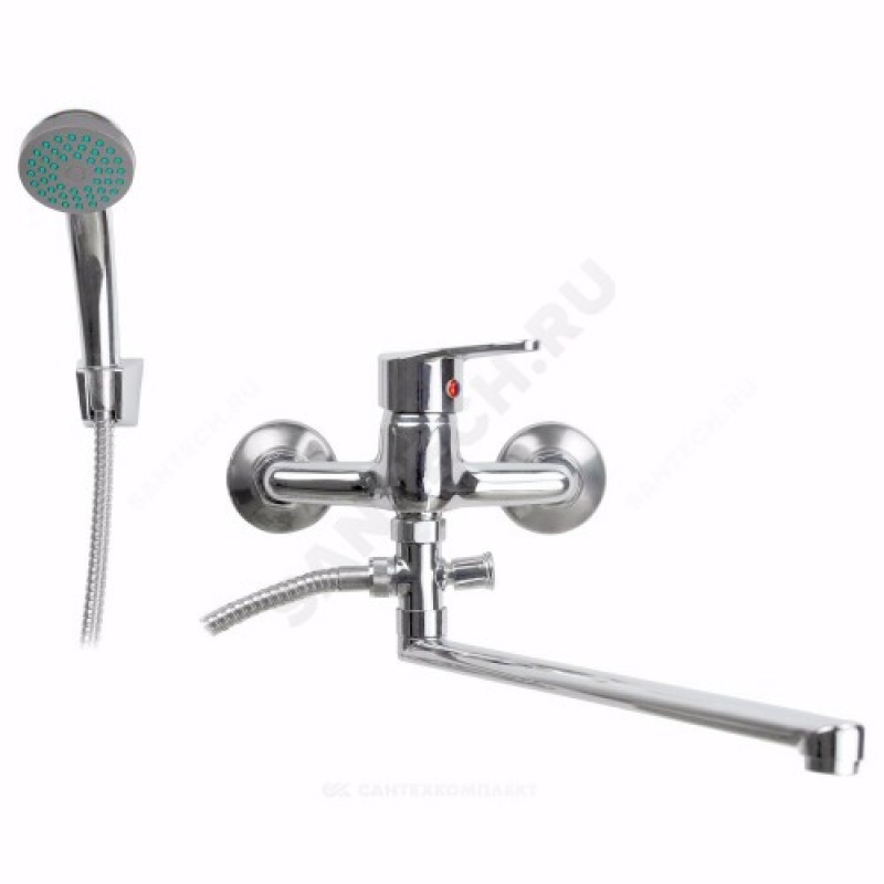 | Комплект поставки | корпус смесителя - 1 шт., излив в сборе с аэратором - 1 шт., шланг для душа - 1 шт., лейка для душа - 1 шт., дивертор - 1 шт., держатель лейки настенный (в комплекте крепеж) - 1 шт., крепежный комплект смесителя к стене (эксцентрики - 2 шт., отражатели - 2 шт., уплотнительные прокладки - 2 шт.), упаковка, паспорт |