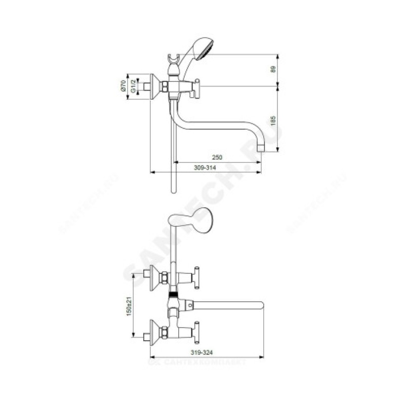 | Комплект поставки | смеситель, шланг для душа, лейка для душа, держатель для лейки, эксцентрики, металлические отражатели, уплотнительные прокладки, упаковка, паспорт |