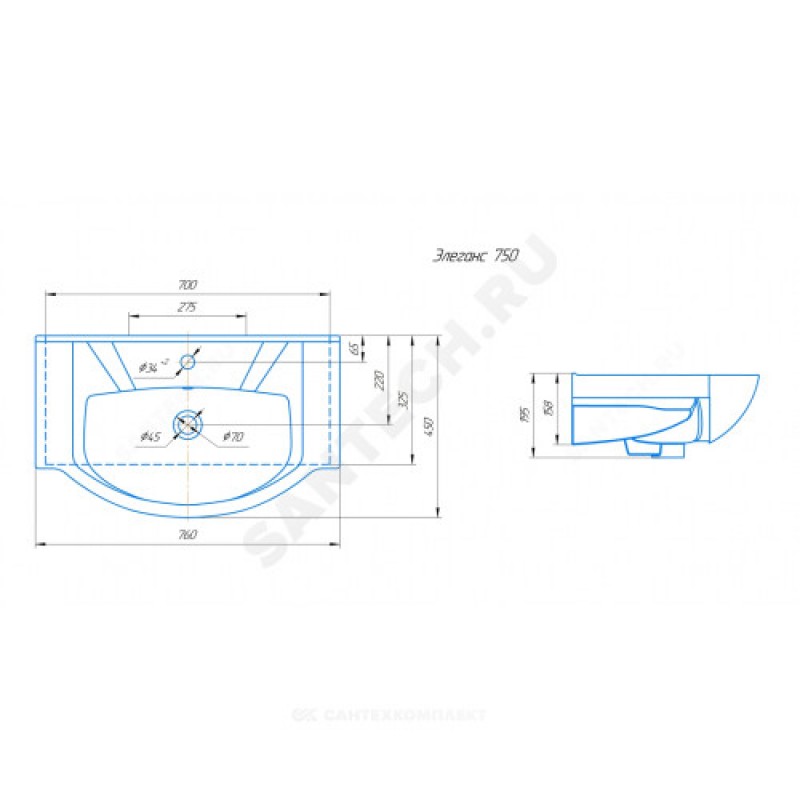 | Наименование производителя | Умывальник Элеганс 750 |