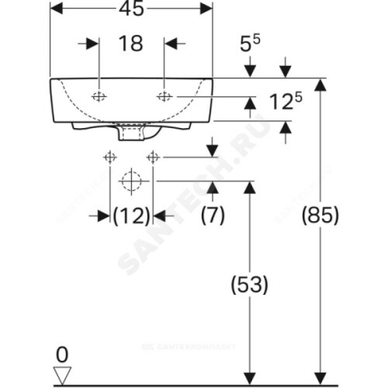 Наименование производителя Geberit Renova Plan Раковина с отв., с переливом 450x320 мм