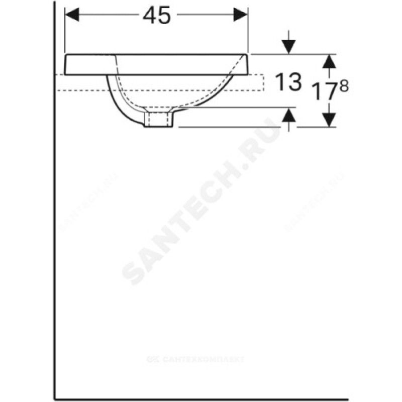 | Наименование производителя | 500.740.01.2 GEBERIT раковина на столешницу VARIFORM с отв. д/смес., с переливом /55х45/(белый) |