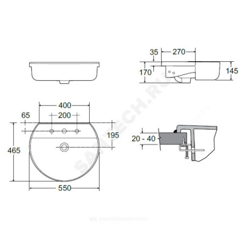| Комплект поставки | "Полувстраиваемый умывальник 55x46,5 см |