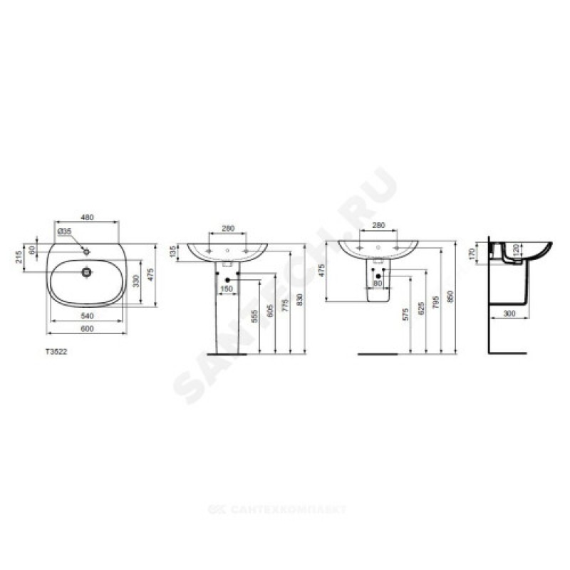 | Возможность установки | к стене, на пьедестал, на полупьедестал |
