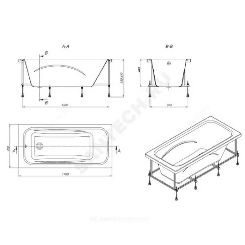 | Комплект поставки | Акриловая ванна прямоугольная, глубина 44 см. Монтажный комплект заказывается отдельно. Монтажный комплект (каркас, комплект креплений к стене, система слив-перелив полуавтомат) |